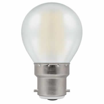 LED filament 45mm round lamp with clear finish.